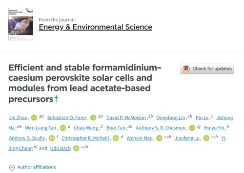 在上述最新研究中,莫纳什大学的sebastian fürer博士称,他们在关键阶段使用铵作为挥发性阳离子(带正电荷的离子),从而解决了这个问题。他们的研究成果已于近期发表在了《能源与环境科学》杂志上。